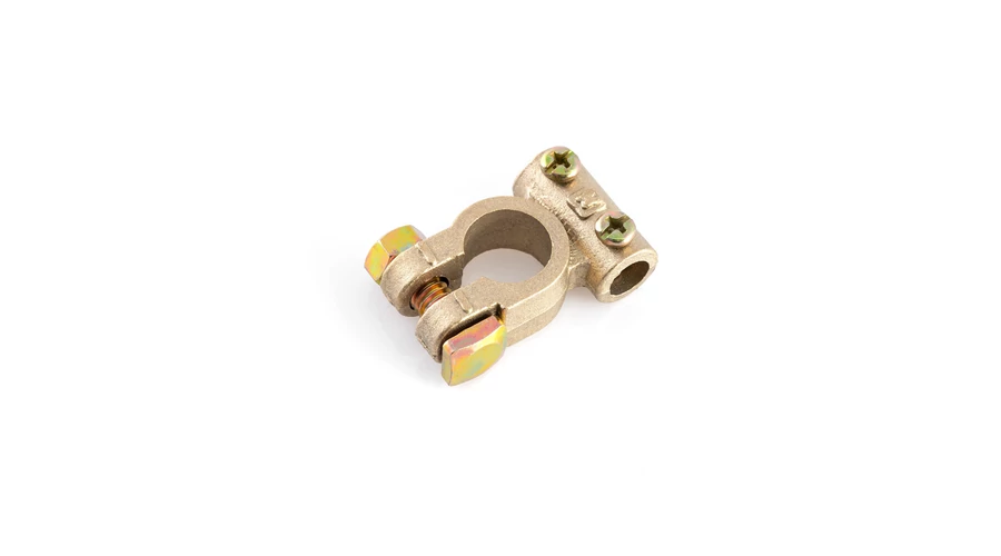 Erősített kivitelű negatív akkumulátor saru, derékszögű kábelbefogatással.