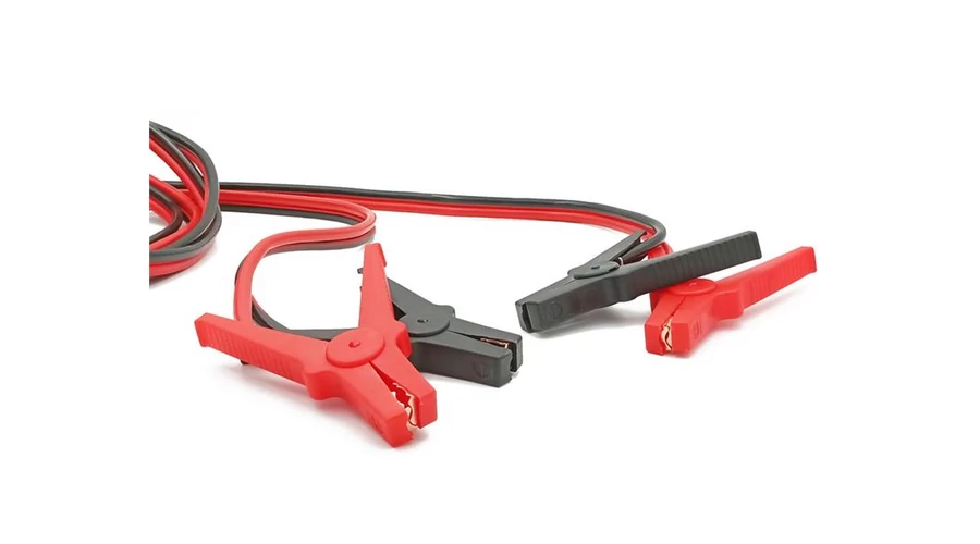 900 amper terhelhetőségű indítókábel, vagy más néven bikakábel. A kemény papírdobozon belül egy cipzáros füles táskában van a termék.