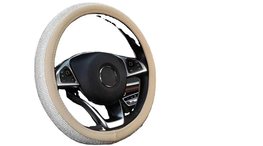 Kormányvédő | strasszköves | fekete bőr szegéllyel | aranybarna | 38 cm