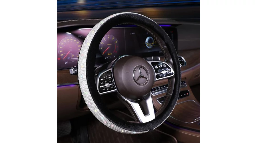 Kormányvédő | strasszköves | fekete bőr szegéllyel | aranybarna | 38 cm