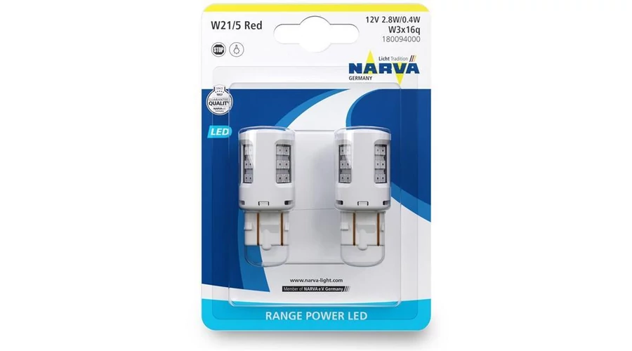 Narva | izzó | 12V 21/5W BAY15d | 2,8W/0,4W | piros | LED | 2 darabos bliszter
