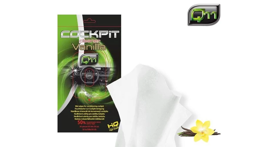 Q11 | műszerfalápló & tisztító kendő | vanília illat | matt hatás | 30 darabos csomag