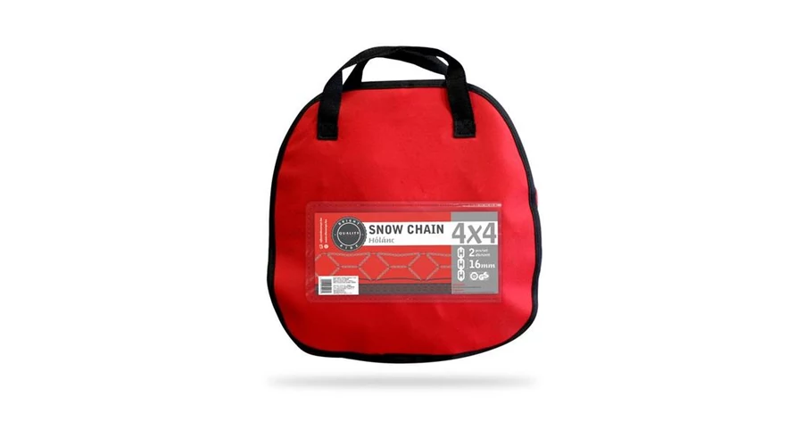 Edzett acélból készült hólánc aszimmetrikus gyémántmintázattal, amely segíti a tapadást havas és jeges úton. A 16 mm-es négyzet keresztmetszetű láncszemek biztosítják a stabil rögzítést.
