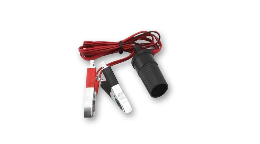 Kiegészítő aljzat a szivargyújtóhoz, akkumulátorra készen, akkucsipeszes kábelen.